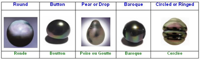 PEARL GRADING CHART : the 5 "S" of a pearl : Size, Surface, Shade, Shape, Shine